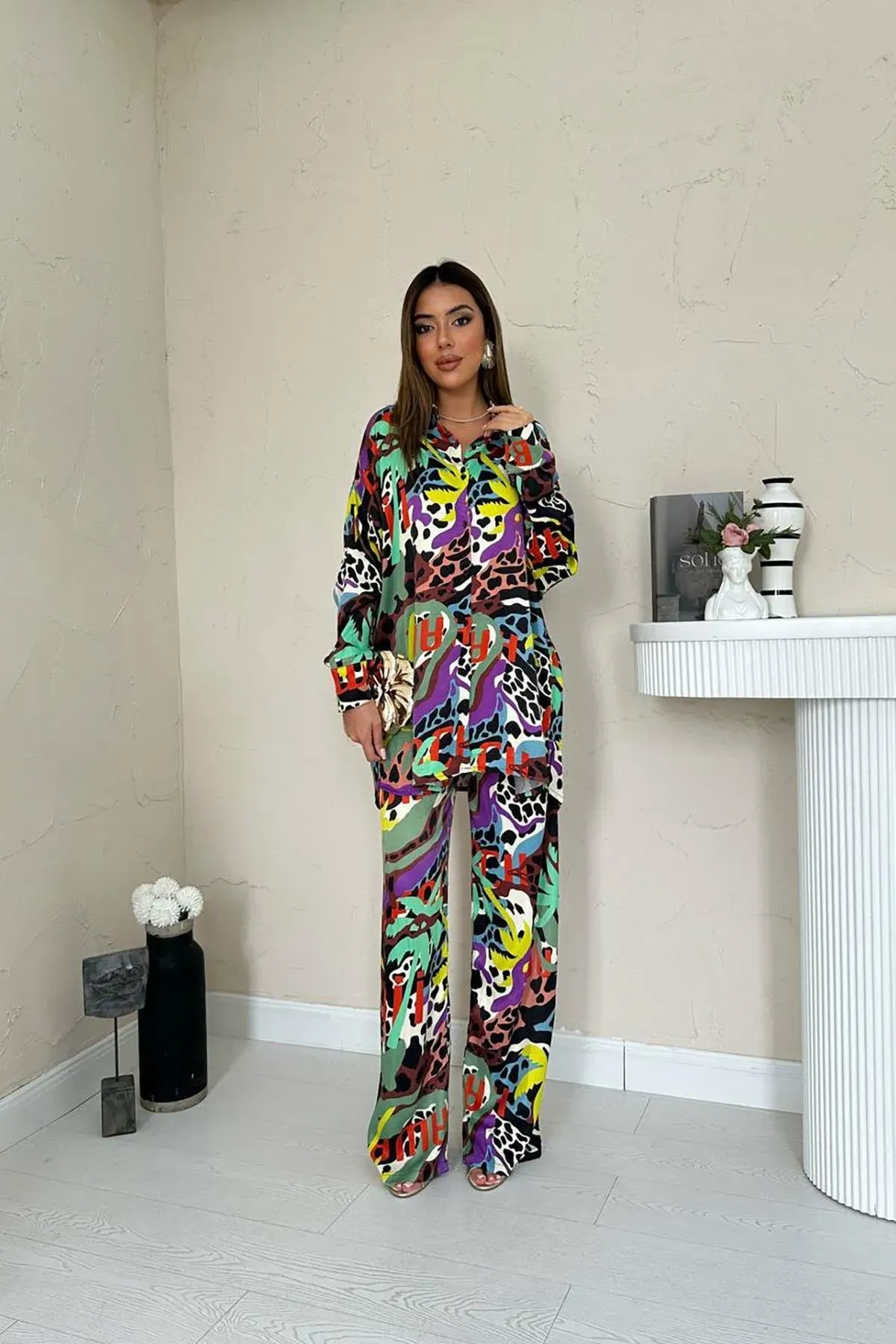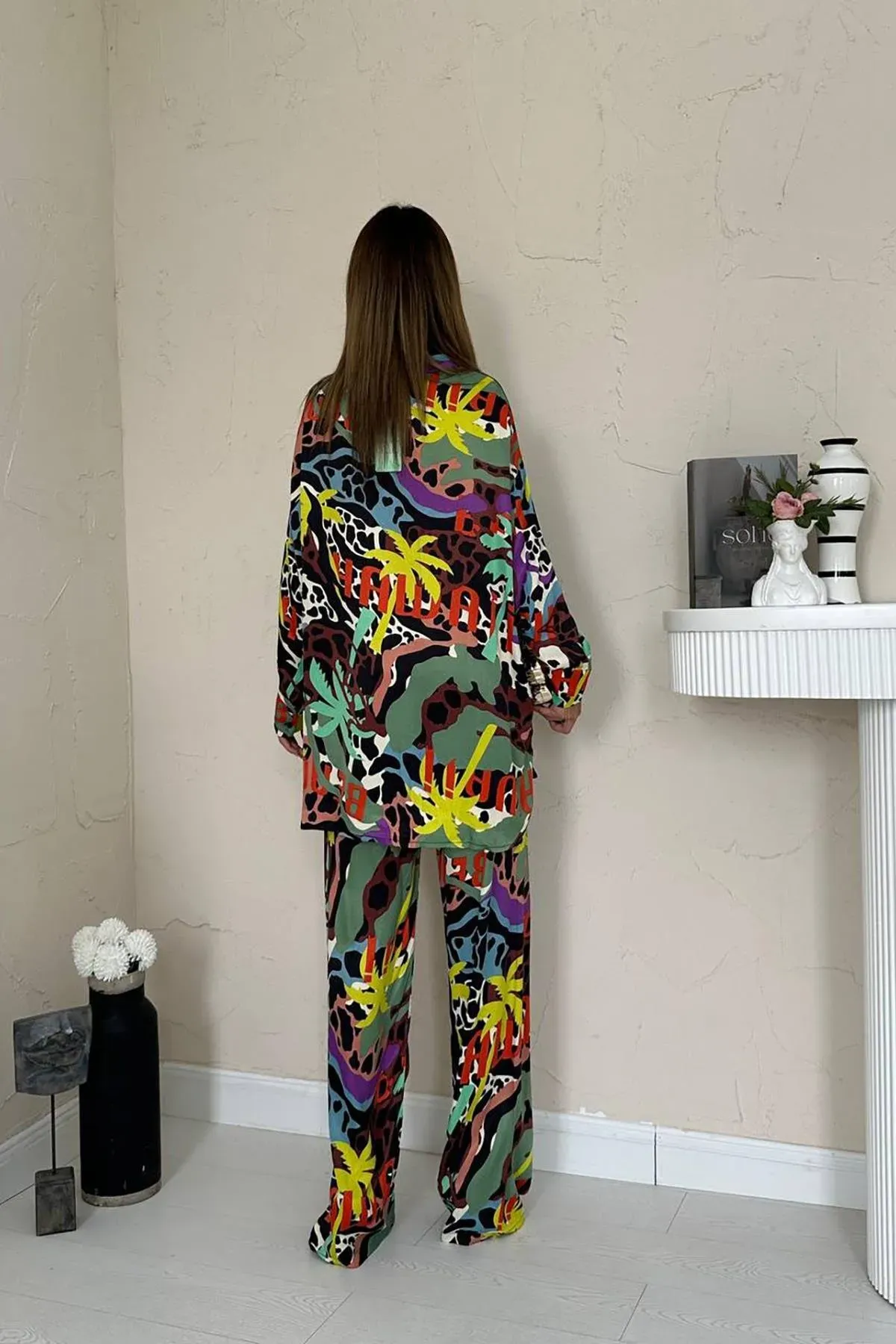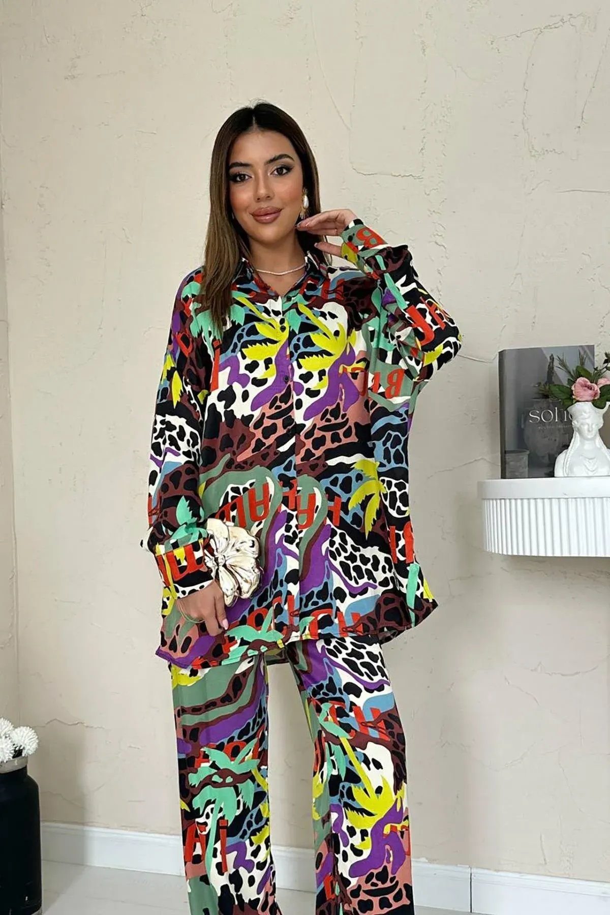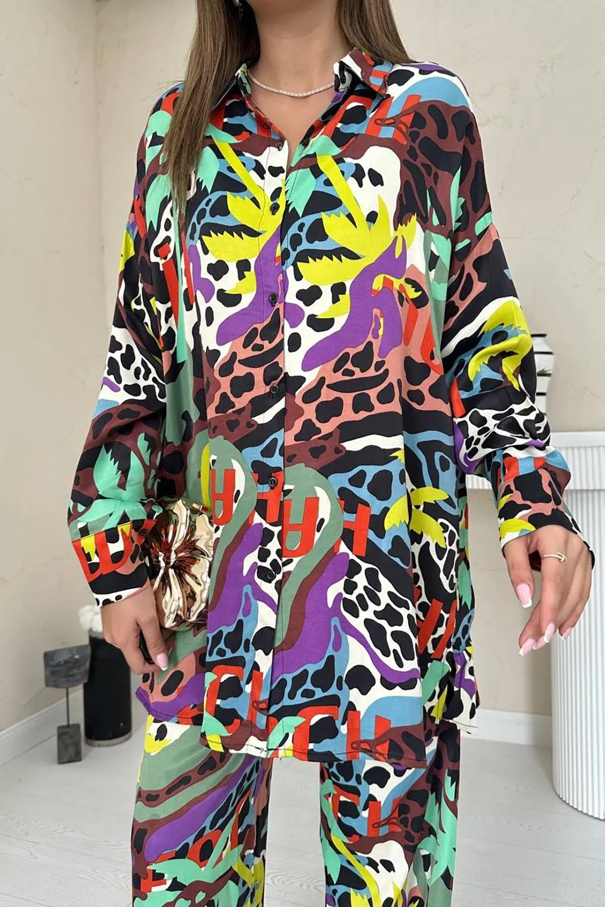 Dijital Desenli Gömlek ve Pantolon Takım
