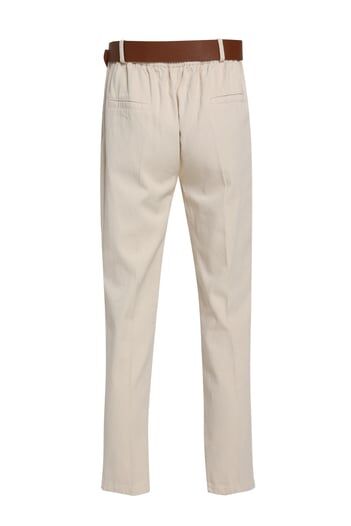 Halka Deri Kemerli Pantolon - EKRU